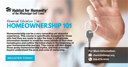 Habitat for Humanity MS Gulf Coast currently offers various financial education curriculums. All classes and coaching are currently offered free of charge, and all courses are open to the public, but registration is required.